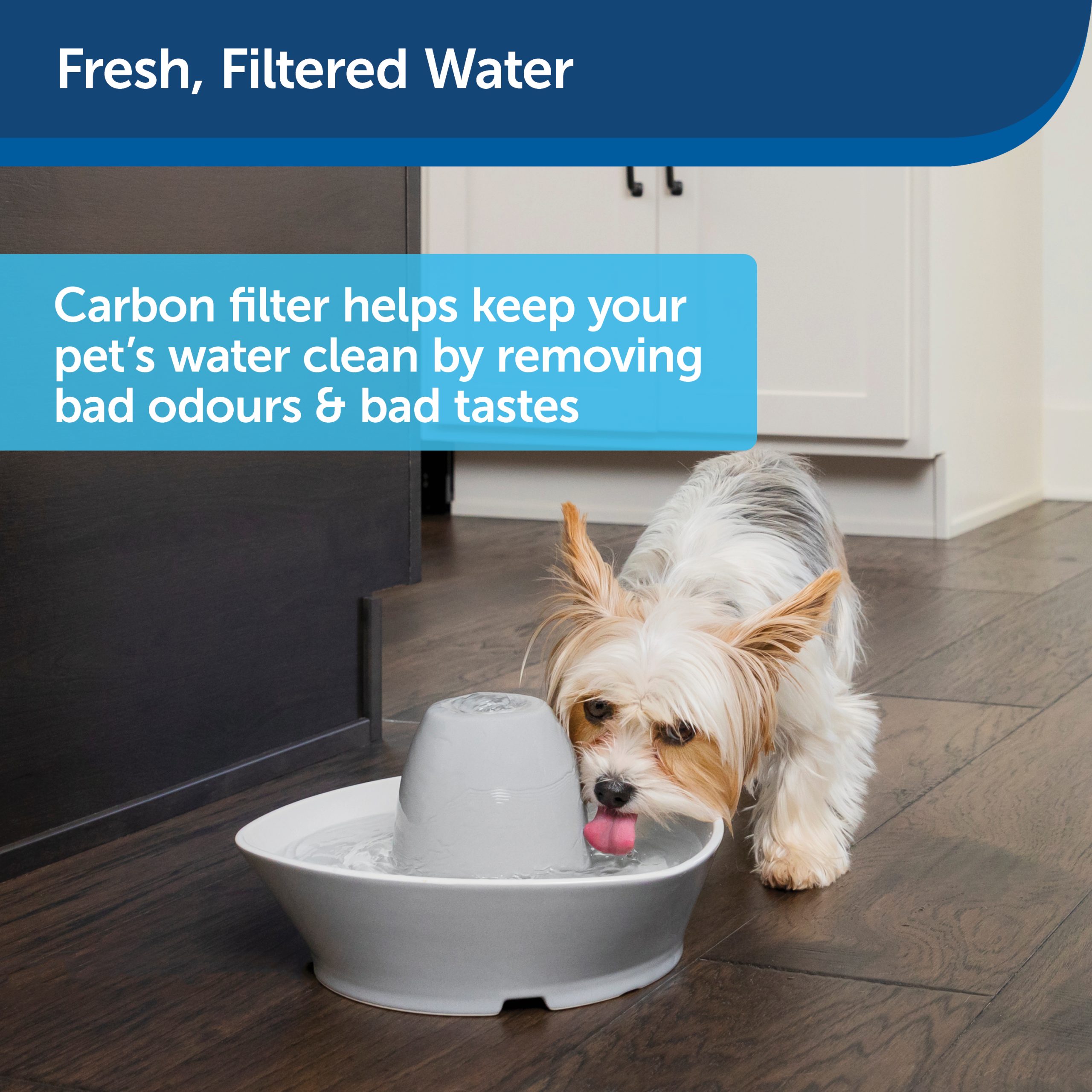 Pravočasna in redna menjava filtrov je pogoj za svežino in čistočo vode, ki je namenjena vašemu psu. Filter vsebuje oglje in kokosova vlakna. Preprečuje, da bi voda v pitniku dobila neprijeten vonj ali okus.